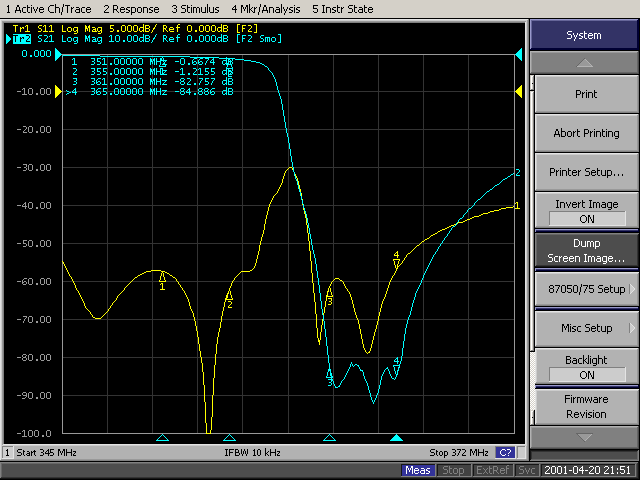 图1.3 KSGQ-350T型宽带带阻双工器RX端插损、隔离度